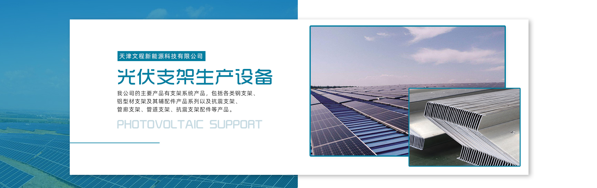 公司是集設計、研發、生產、制造為一體的綜合型企業。公司占地面積20000平方米,注冊資金5000萬元整。公司坐落于華北鋼鐵重鎮--大邱莊,距天津市區50公里、鄰104和205國道及京滬高速,交通十分便捷。 本公司擁有三個生產車間,其中兩個冷彎型鋼車間,一個鋅鋁鎂型鋼車間,擁有自動冷彎成型機10條,自動數控沖孔機10條以及焊接加工等設備。主要生產產品有:太陽能光伏支架、各種規格的C/Z/U型鋼、抗震支架、管廊支架及整套配件等。